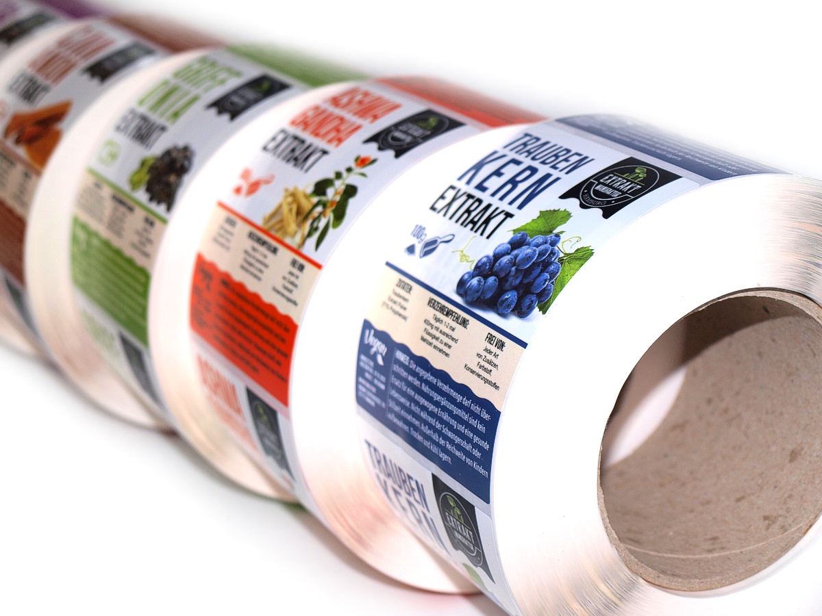 Labels in both Paper (Matt, Semi Coated, Coated) and filmic (PE, PET, PVC, PP) label stock using adhesives based on what the application demands.